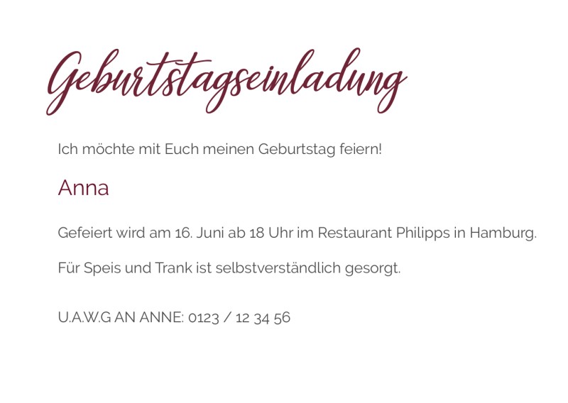 Erstellen sie eine eigene einladungskarte, indem sie die vorlage mit ihrem text individualisieren.